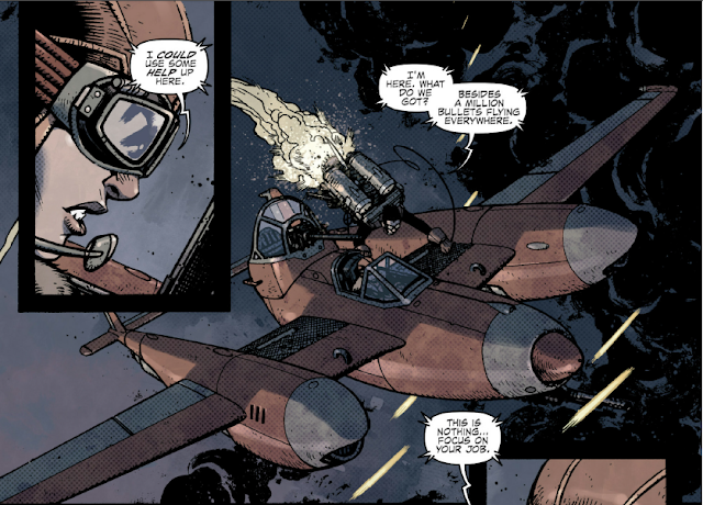 Wild Blue Yonder #03: Aviões retro. Vida dos céus. Frotas aéreas à caça de piratas do ar e libertários que sobrevivem em porta-aviões voadores. E jetpacks. Divertido e bem ilustrado, Wild Blue Yonder é um mimo para os que gostam de coisas com asas que percorrem os céus. O ritmo narrativo está claramente constrangido pela curta duração da série, o que impede que o grafismo nos mostre a espectacularidade que intui. Fica a sensação que o final será qualquer coisa de grandioso.
